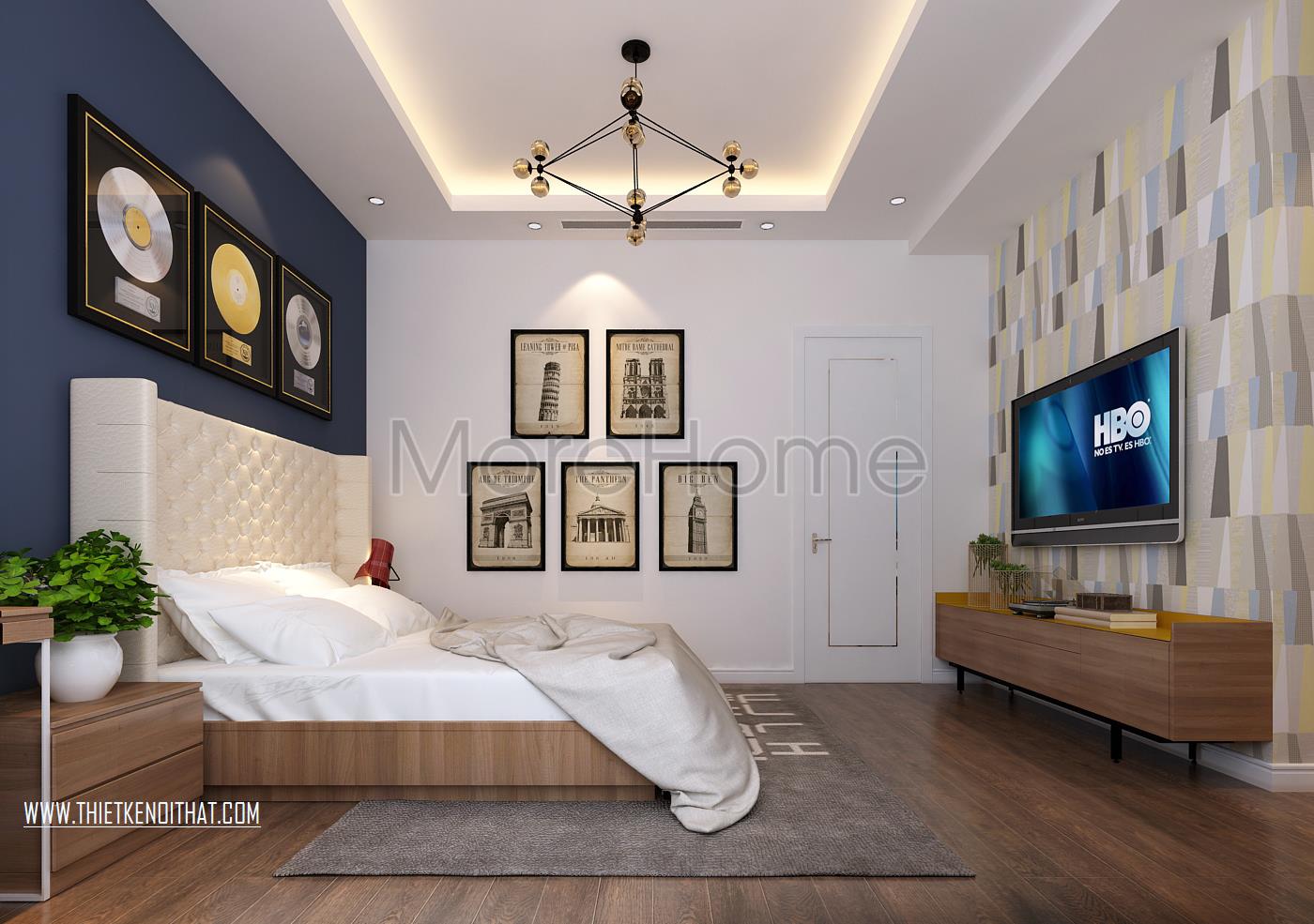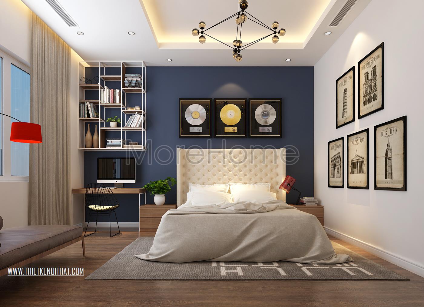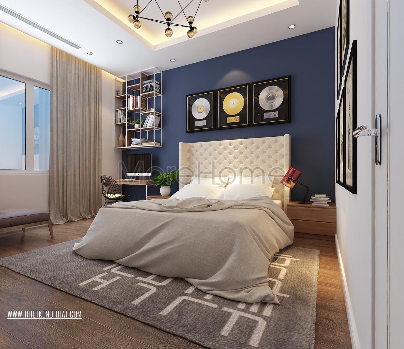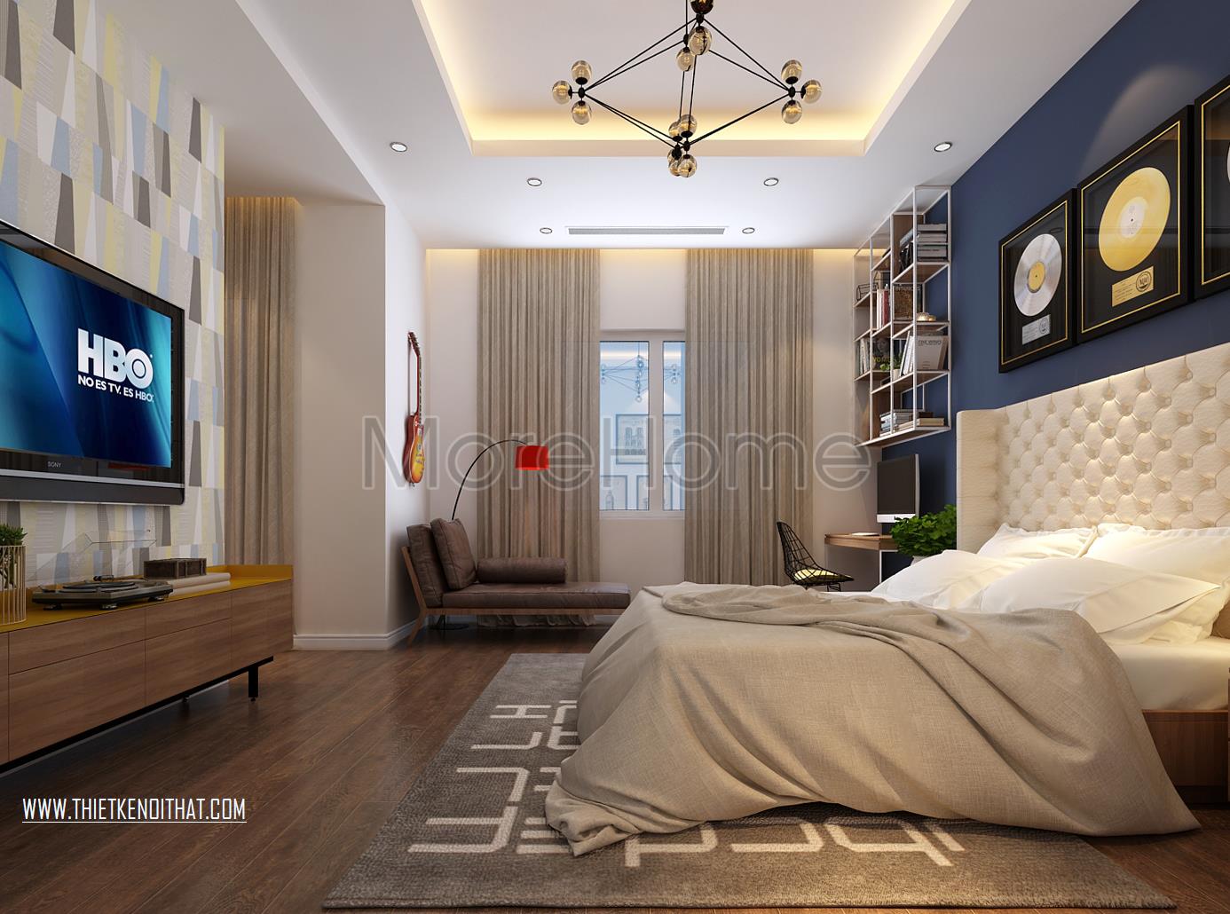 Thiết kế nội thất phòng ngủ hiện đại sử dụng các hình khối đơn giản, không quá đi sâu vào các chi tiết cầu kỳ mang đến sự trẻ trung và linh hoạt. Các thiết kế tủ kệ được kiến trúc sư bố trí hợp lý ở các góc phòng, không nặng về kiểu cách, chỉ sử dụng các thanh ngăn nhẹ nhàng giúp mang đến sự tiện nghi cần thiết cho gia chủ.