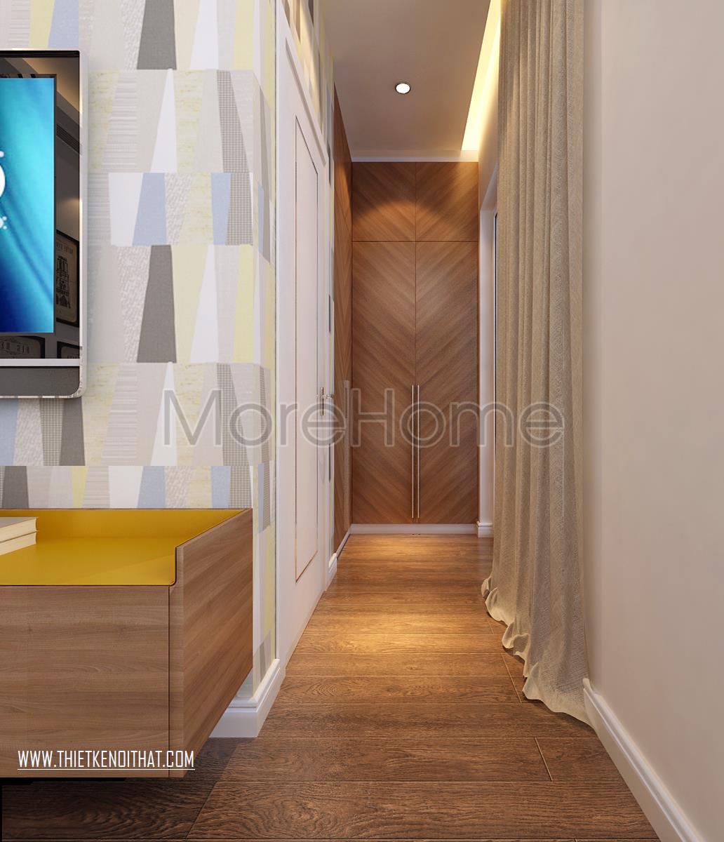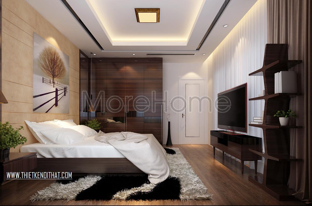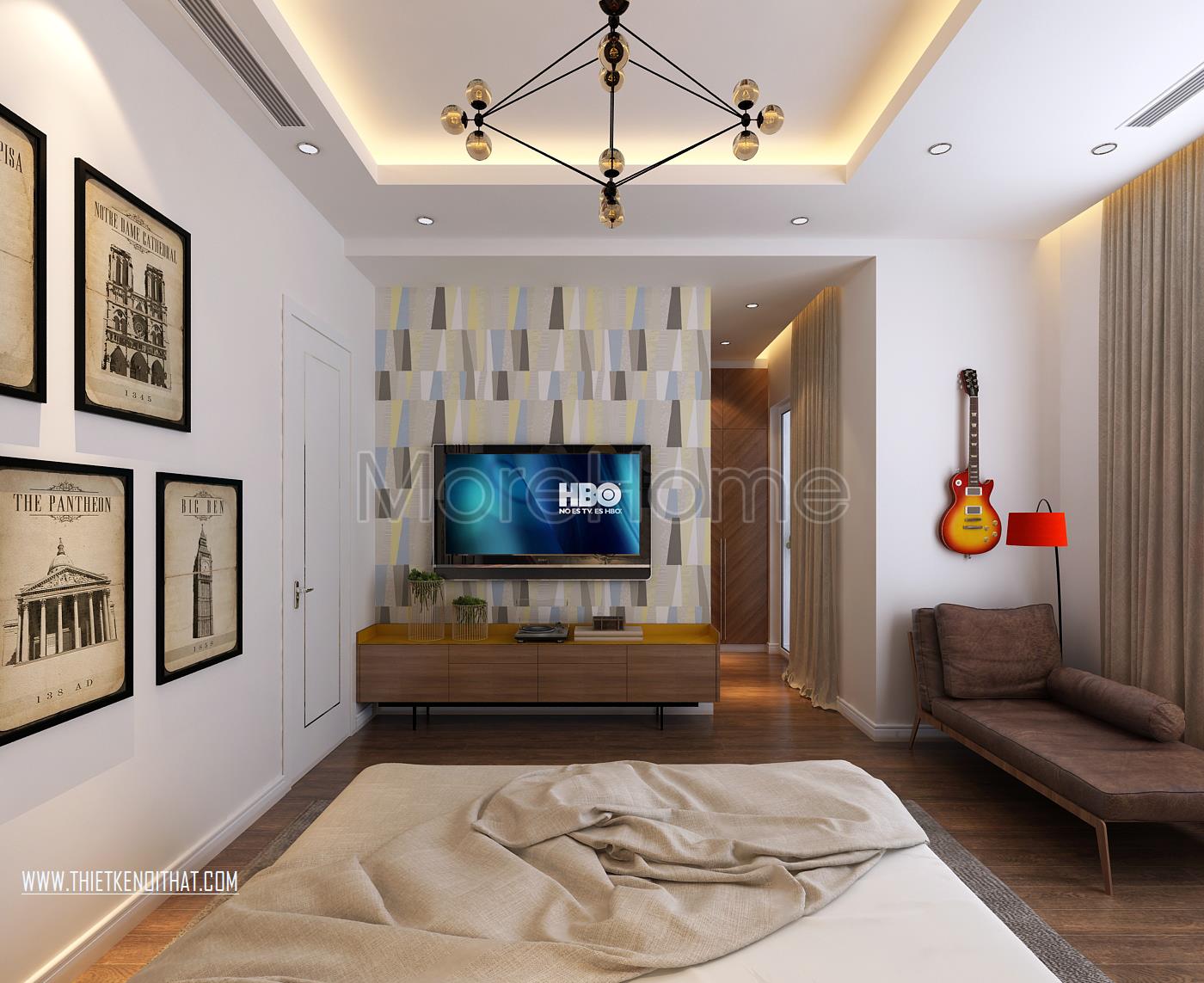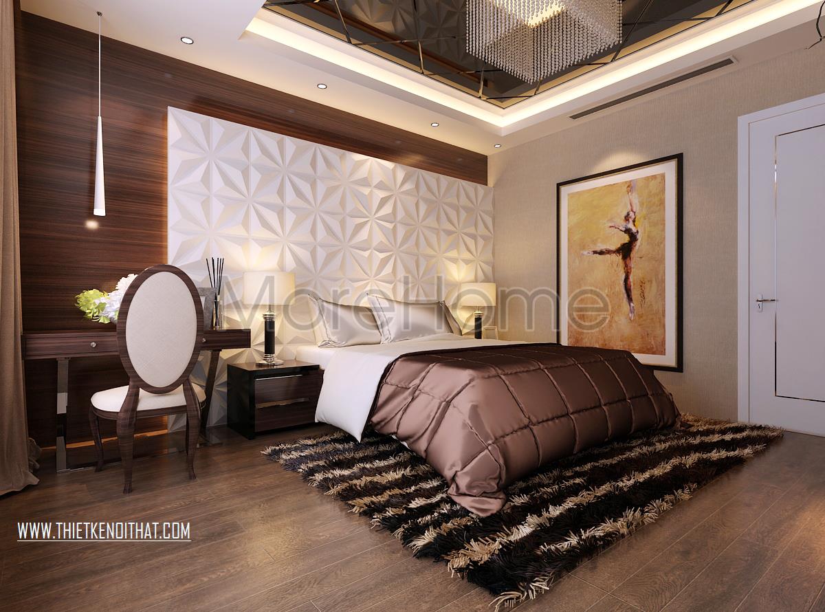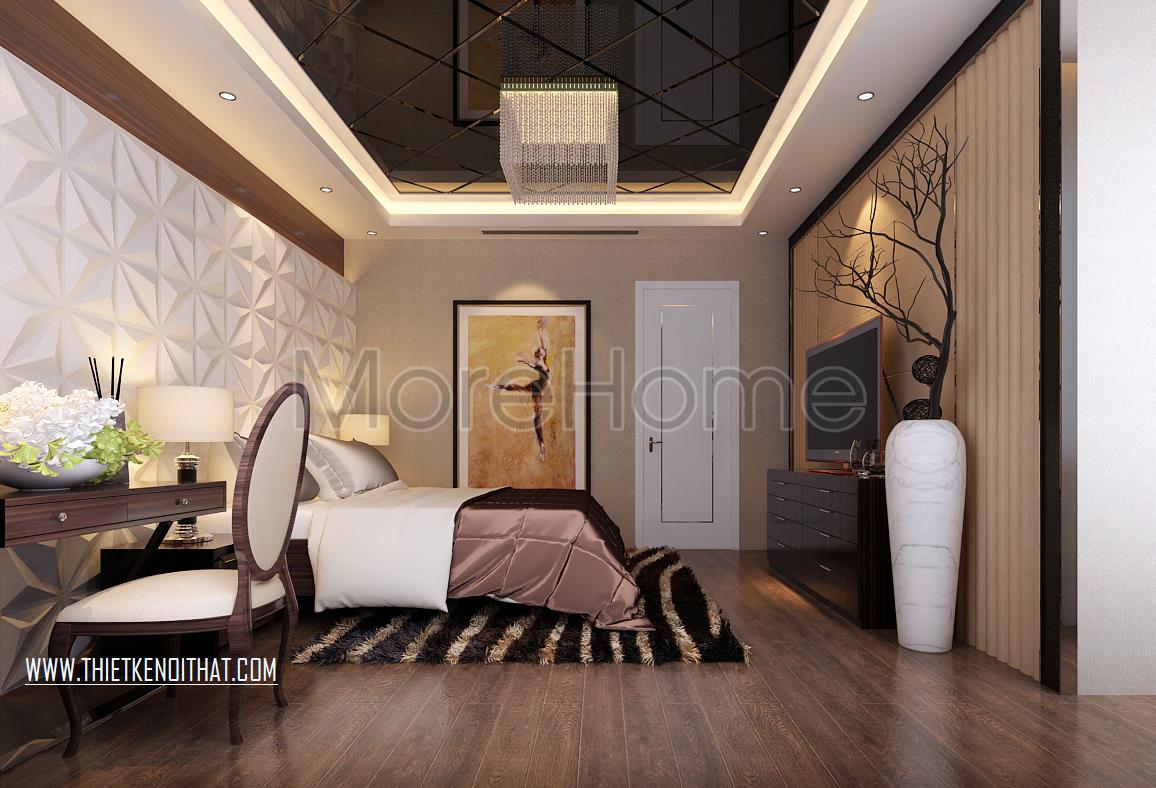 Thiết kế nội thất phòng ngủ hiện đại sử dụng các hình khối đơn giản, không quá đi sâu vào các chi tiết cầu kỳ mang đến sự trẻ trung và linh hoạt. Các thiết kế tủ kệ được kiến trúc sư bố trí hợp lý ở các góc phòng, không nặng về kiểu cách, chỉ sử dụng các thanh ngăn nhẹ nhàng giúp mang đến sự tiện nghi cần thiết cho gia chủ.