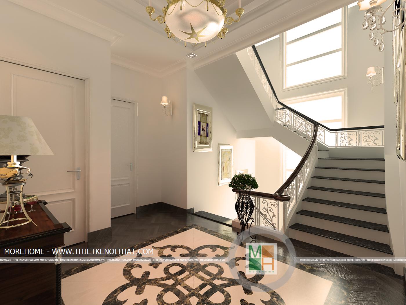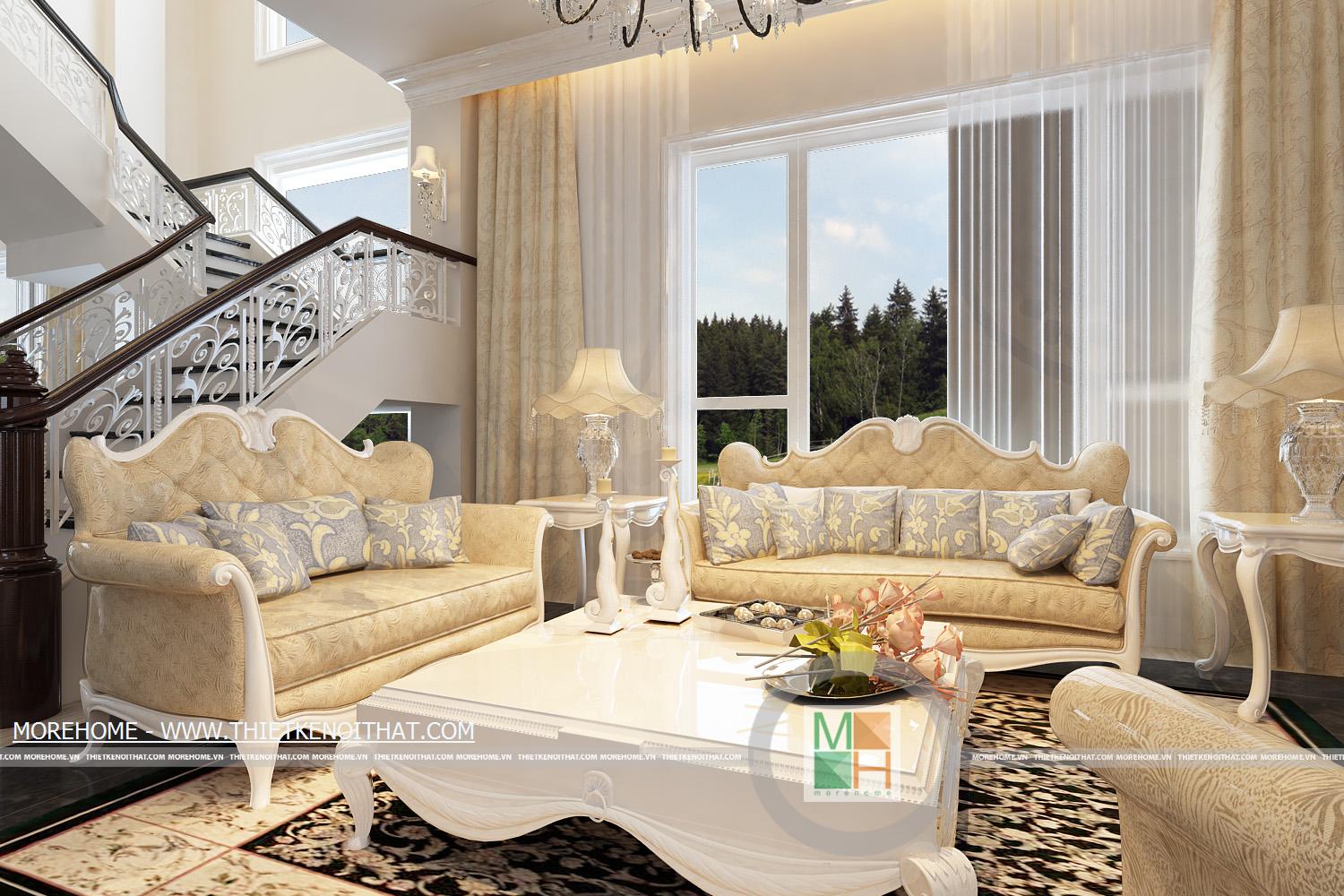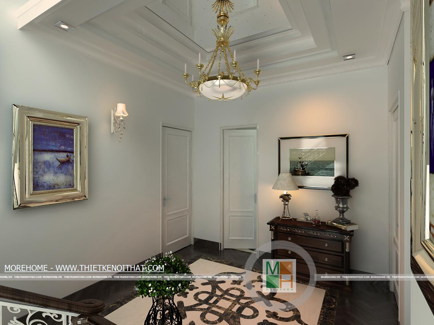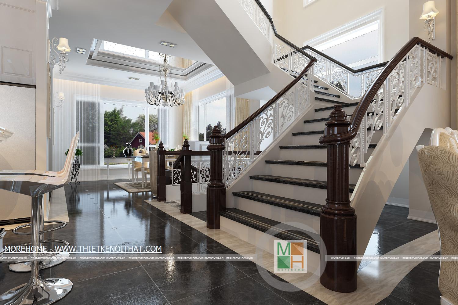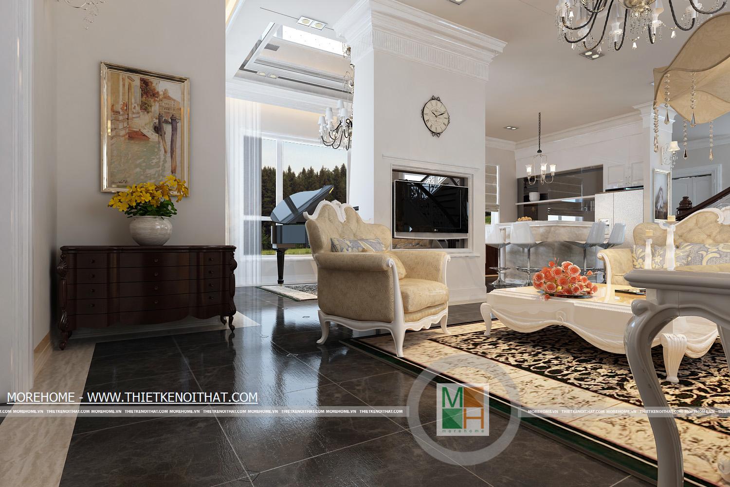 Cũng bởi vậy, không gian nội thất biệt thự cũng đòi hỏi xứng tầm với vị trí và giá trị mà nó vốn có nhưng cũng đồng thời thể hiện được phong cách, tính thẩm mĩ của chủ nhà. Hiểu được điều đó, chuyên gia nội thất của MoreHome đã kết hợp một cách sáng tạo giữa phong cách tân cổ điển lãng mang đậm chất Âu châu với những mong muốn của chủ nhà, thiết kế nên một không gian sống sang trọng, hiện đại nhưng cũng hết sức gần gũi.