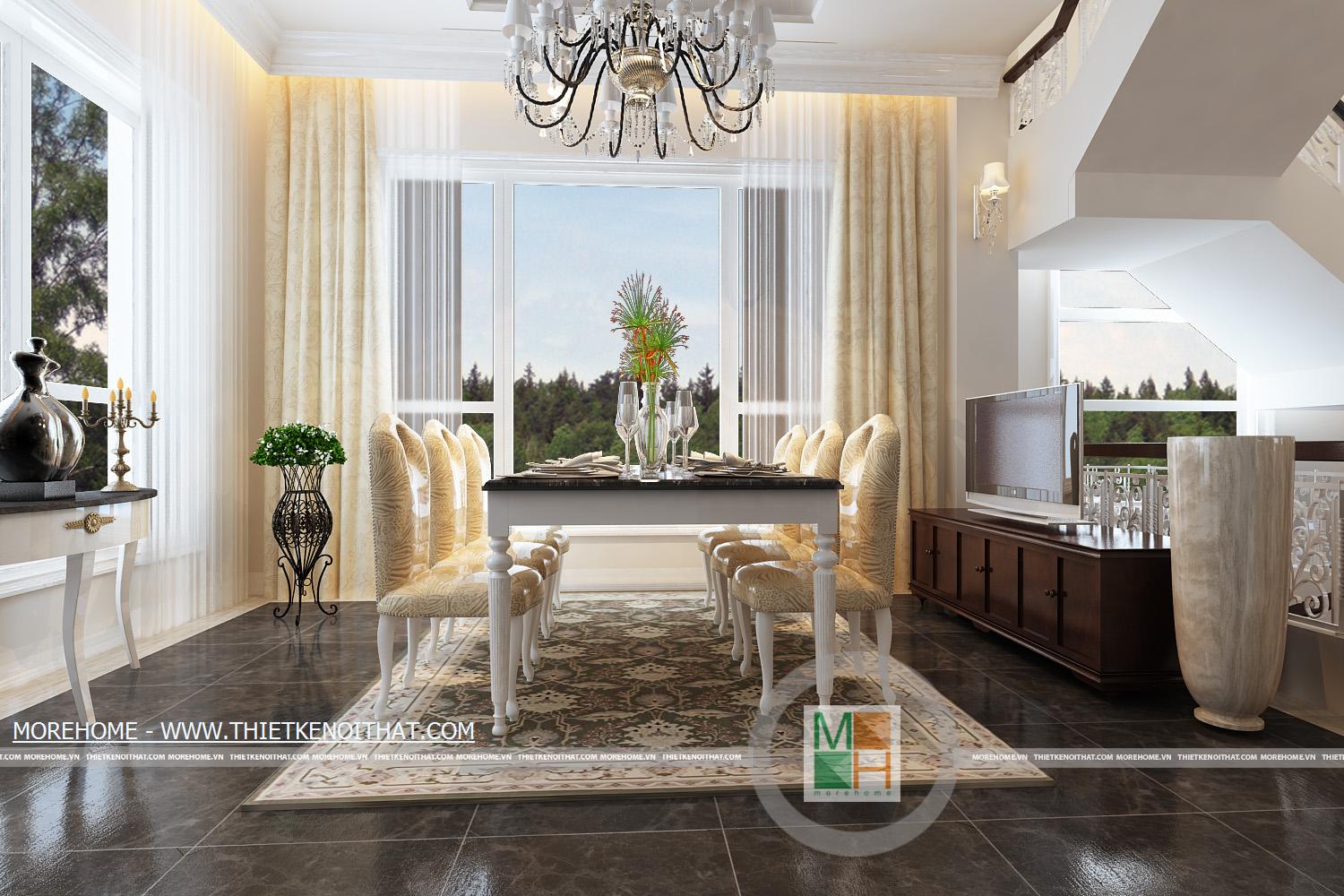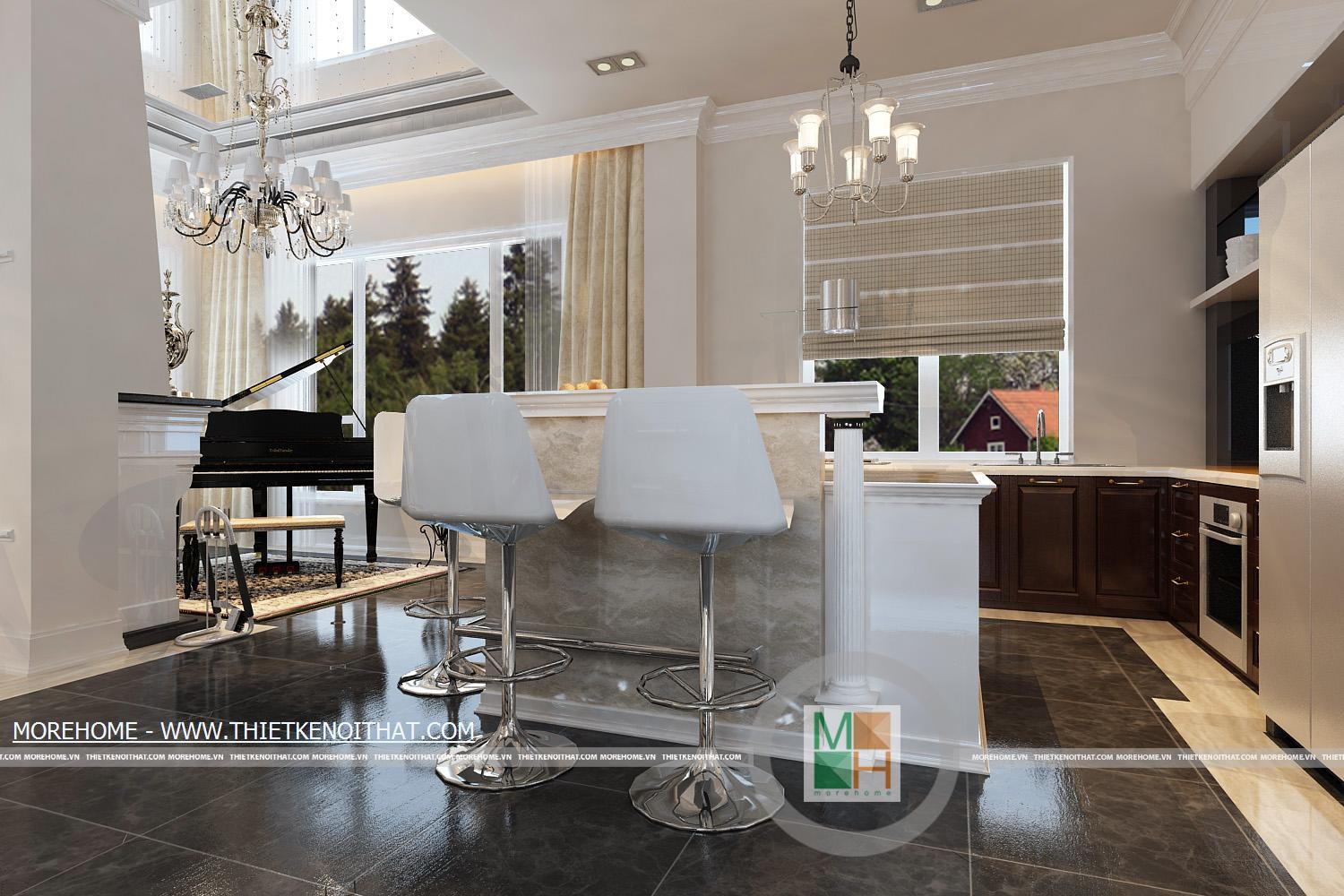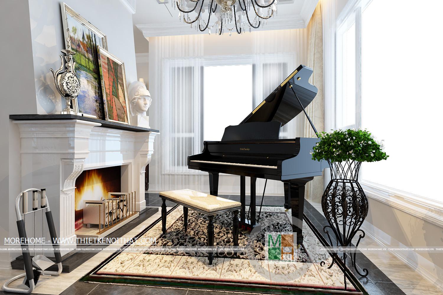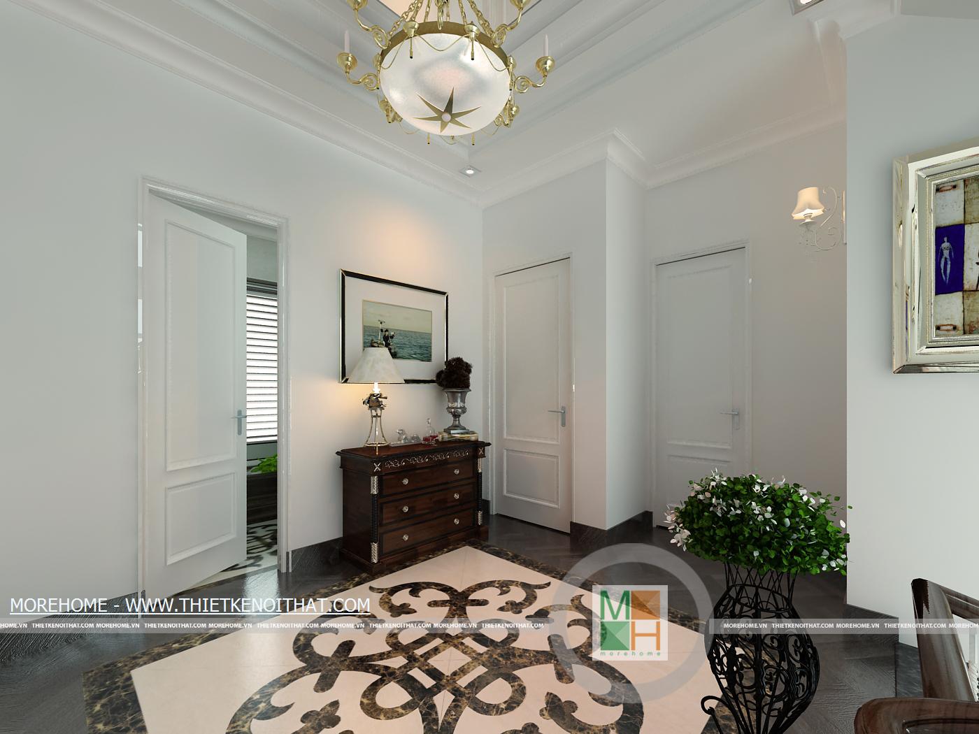 Cũng bởi vậy, không gian nội thất biệt thự cũng đòi hỏi xứng tầm với vị trí và giá trị mà nó vốn có nhưng cũng đồng thời thể hiện được phong cách, tính thẩm mĩ của chủ nhà. Hiểu được điều đó, chuyên gia nội thất của MoreHome đã kết hợp một cách sáng tạo giữa phong cách tân cổ điển lãng mang đậm chất Âu châu với những mong muốn của chủ nhà, thiết kế nên một không gian sống sang trọng, hiện đại nhưng cũng hết sức gần gũi.