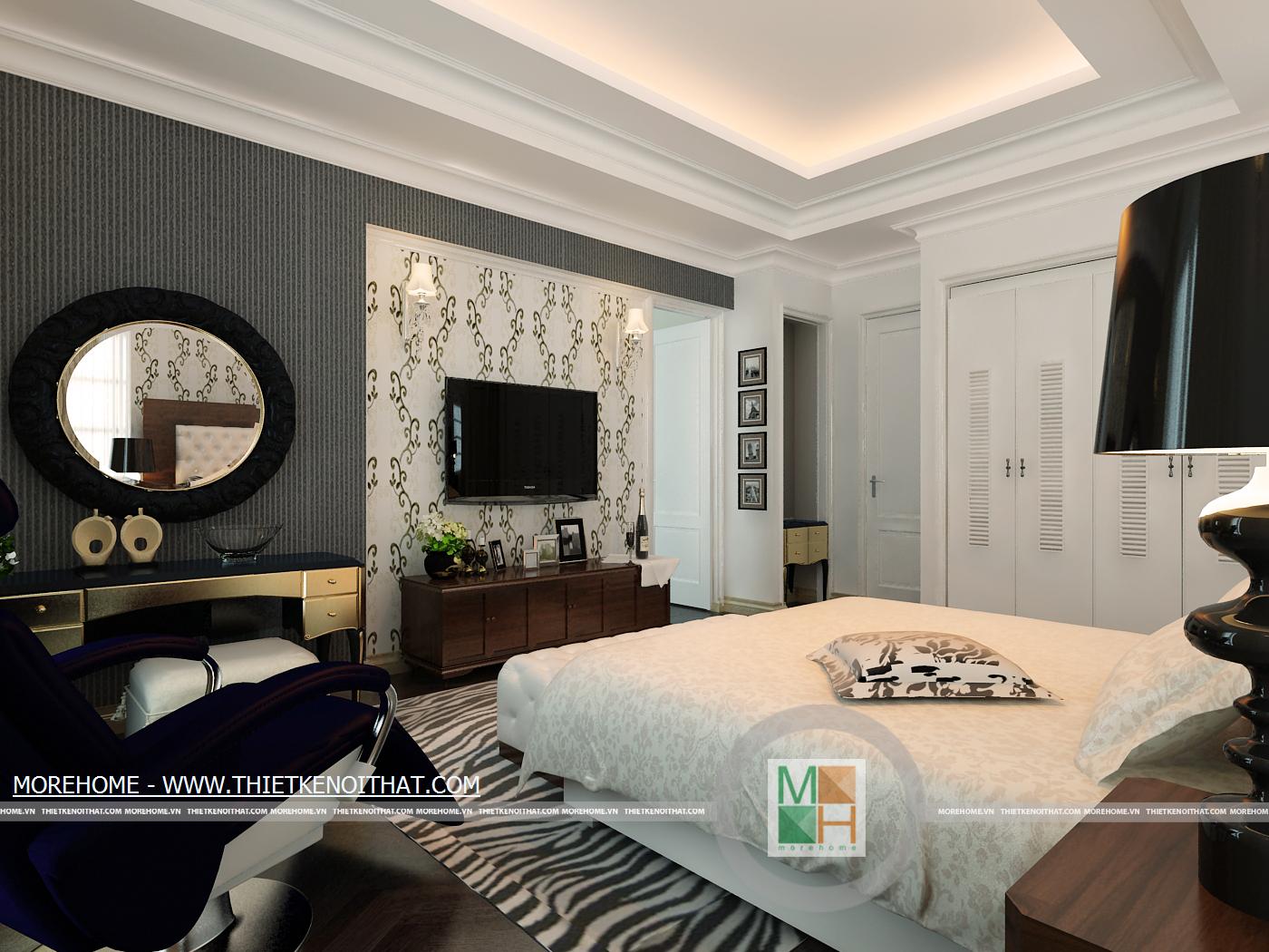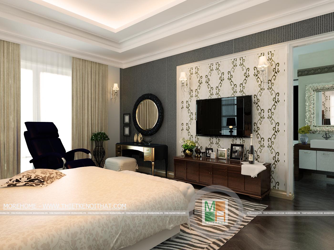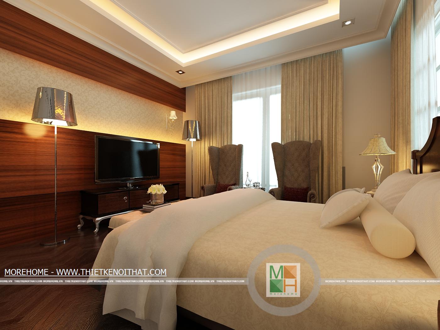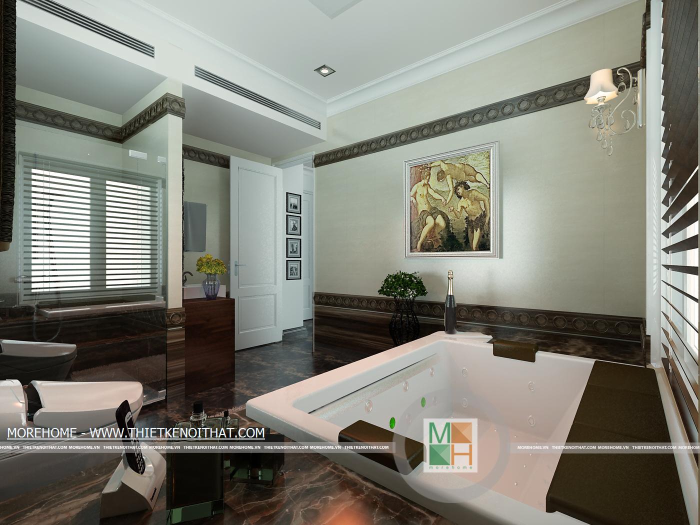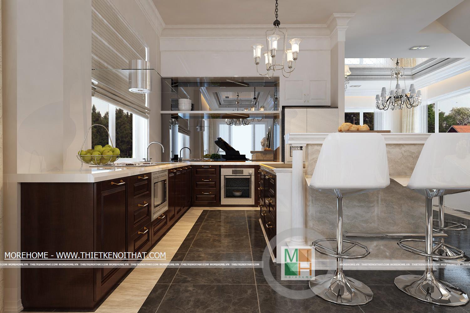 Cũng bởi vậy, không gian nội thất biệt thự cũng đòi hỏi xứng tầm với vị trí và giá trị mà nó vốn có nhưng cũng đồng thời thể hiện được phong cách, tính thẩm mĩ của chủ nhà. Hiểu được điều đó, chuyên gia nội thất của MoreHome đã kết hợp một cách sáng tạo giữa phong cách tân cổ điển lãng mang đậm chất Âu châu với những mong muốn của chủ nhà, thiết kế nên một không gian sống sang trọng, hiện đại nhưng cũng hết sức gần gũi.