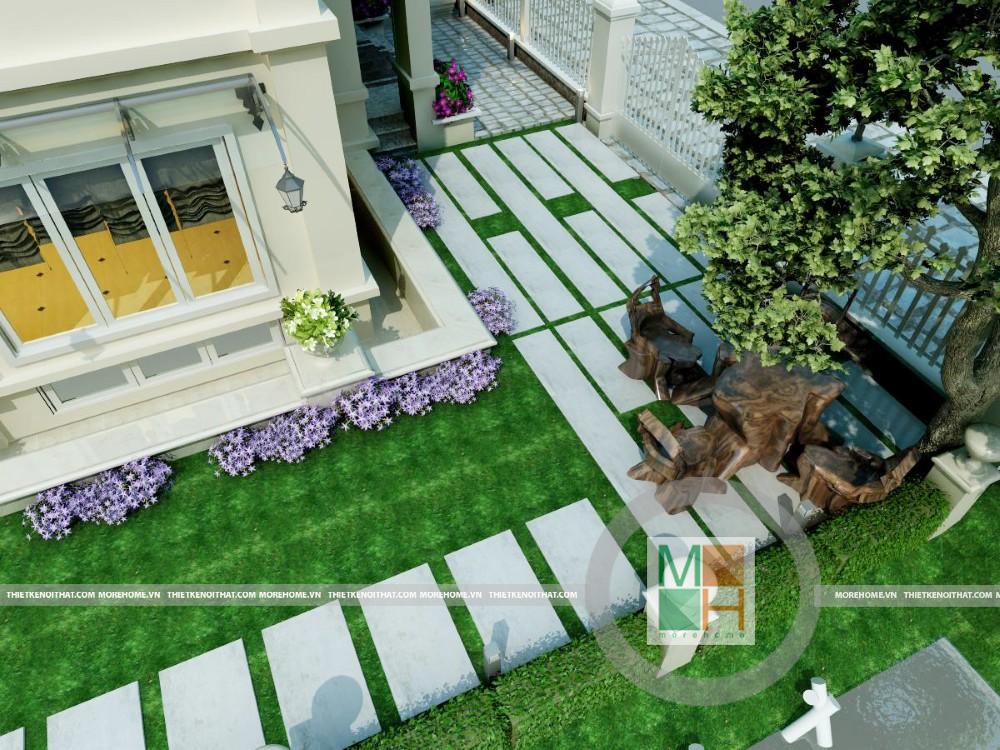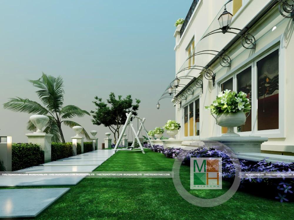 Một góc tầng thường là giàn hoa và cũng là nơi yên tĩnh để uống trà, cà phê. Đây thực sự là một không gian mở, giúp con người có thể hòa mình vào thiên nhiên. Nơi đây có giàn hoa, bồn hoa tự nhiên, không bị che chắn bởi mái lợp, phía dưới là bàn ghế để ngồi uống trà hay cà phê. Thực sự đây là một điểm mạnh trong kiến trúc của căn nhà, giúp cho những thiết kế hiện đại bên trong không bị nhàm chán và cứng nhắc.