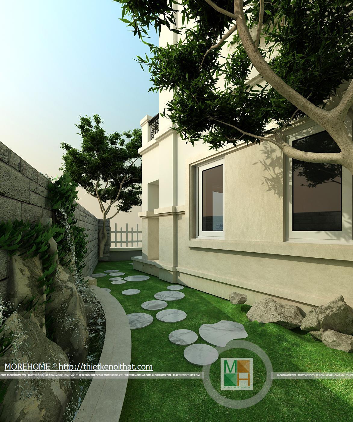 Không gian của căn biệt thự được chia làm 2 bộ phận chính là sân vườn phục vụ cho nhu cầu giải trí, thư giãn và khối kiến trúc chính của căn nhà.