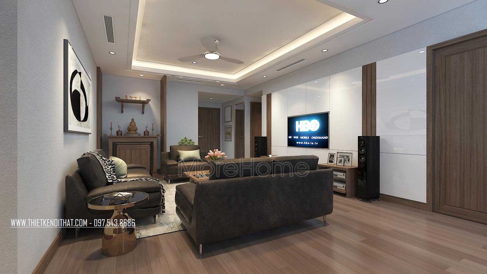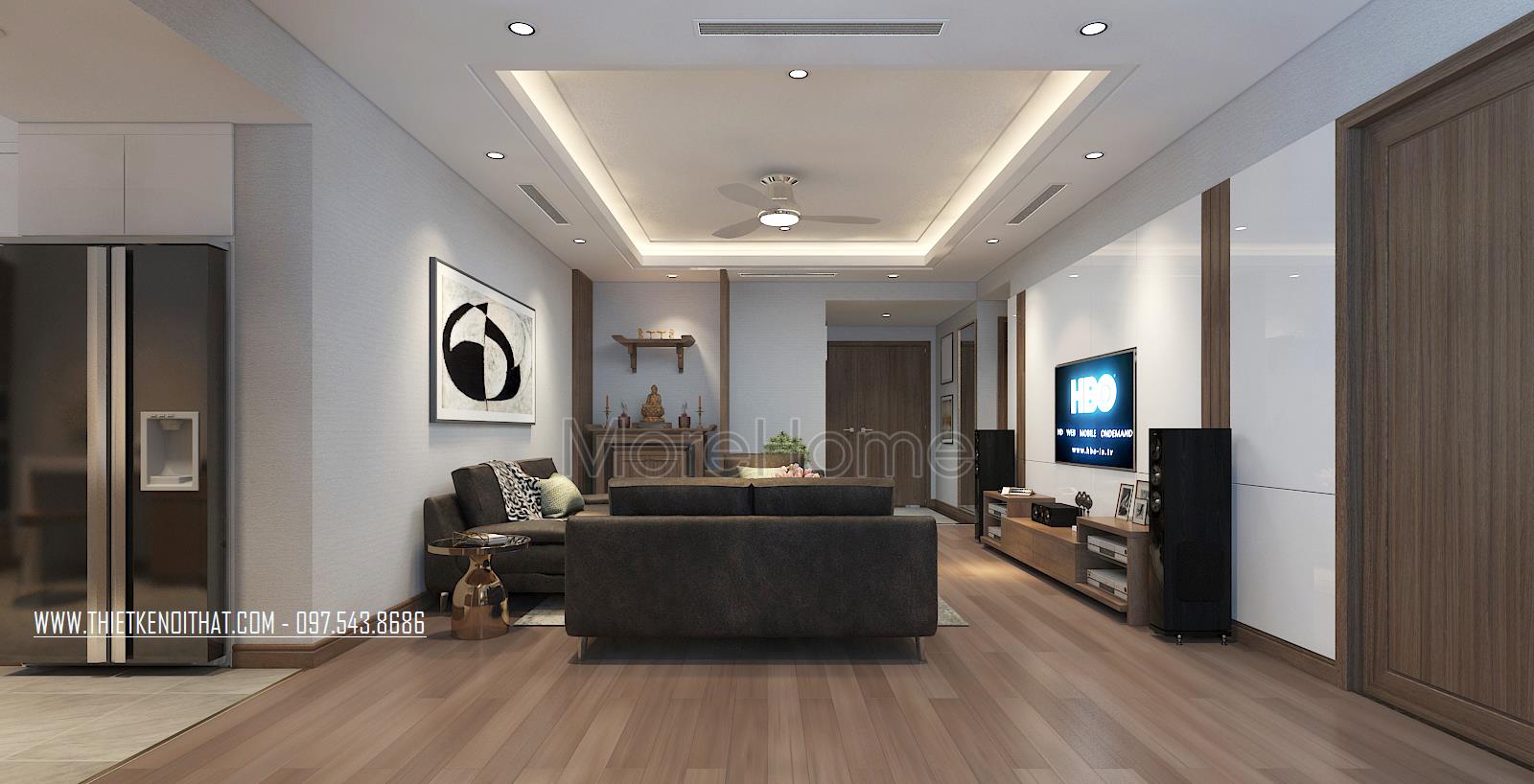 Như vậy, với 2 mẫu thiết kế nội thất nhà chung cư hiện đại mà Morehome mang đến cho gia đình anh một không gian sống tiện nghi sang trọng nhất. Nếu bạn muốn có một thiết kế nội thất nhà chung cư sang trọng hiện đại như thế này thì liên hệ đến 0975438686 để đặt lịch tư vấn và tham khảo mẫu với KTS của Morehome.