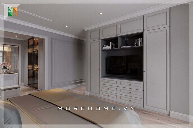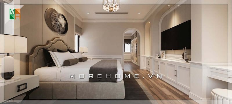 >> Có thể nói, thiết kế nội thất tân cổ điển là một trong những dịch vụ hàng đầu của thương hiệu Nội thất MOREHOME, khởi đầu với ấn tượng đột phá trên thị trường khi có rất nhiều công trình được đánh giá cao ngay từ thời điểm xuất phát như: Keangname, Times City, Royal City, Vinhomes Riverside,... Nếu quý vị có nhu cầu về phong cách thượng lưu này, hãy liên hệ với chúng tôi để chuyên gia tư vấn.