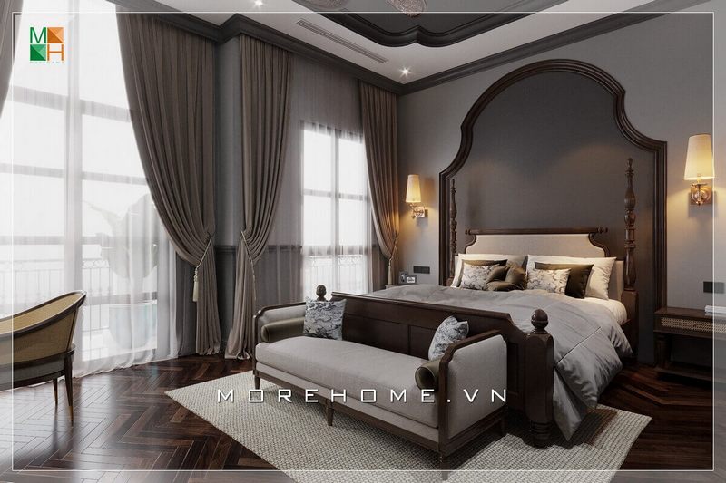 Mẫu thiết kế phòng ngủ sử dụng nội thất gỗ tự nhiên phong cách tân cổ điển sang trọng cho chung cư, nhà phố, biệt thự