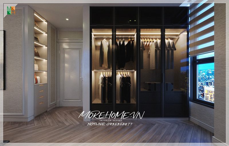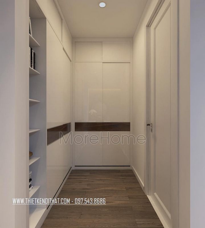 Gợi ý mẫu thiết kế tủ quần bằng gỗ màu trắng âm tường tối ưu được diện tích không gian gọn gàng, ngăn nắp hiện đại mang tính thẩm mỹ cao.
