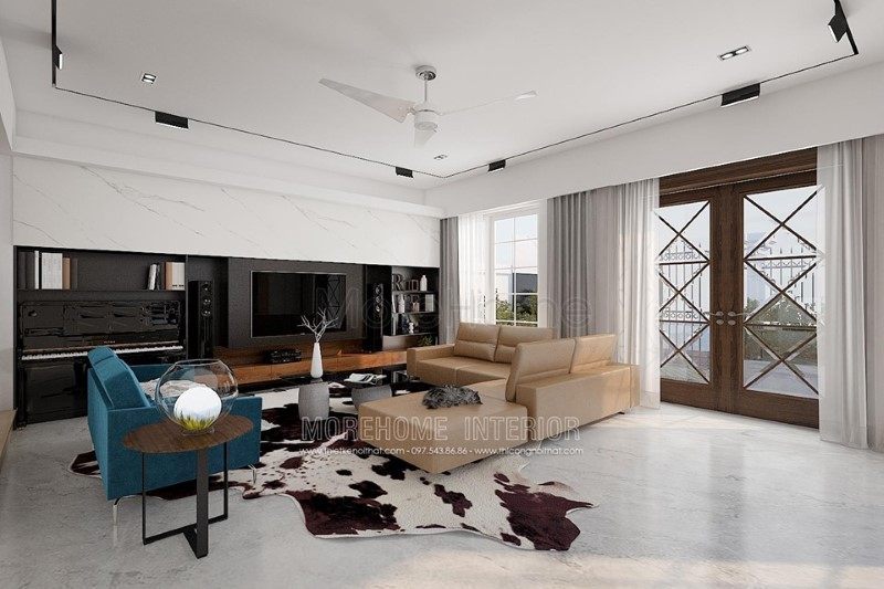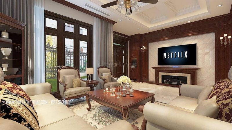 Thiết kế phòng khách biệt thựu với đầy đủ những nội thất tiện nghi mang đến sự ấm cúng và thân thiện mỗi khi khách đến chơi nhà.