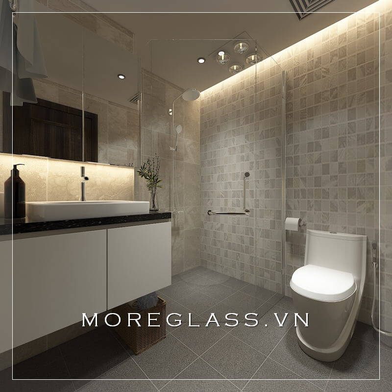 Mẫu thiết kế phòng tắm kính đẹp cho khách sạn kết hợp nội thất và thiết bị vệ sinh cao cấp.