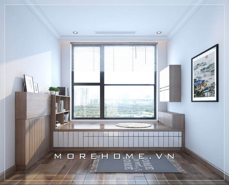 Nội thất phòng ngủ chung cư gỗ công nghiệp, gam màu nâu trầm chủ đạo kết hợp ánh sáng tự nhiên tạo ảm giác sinh động và thoải mái nhất
