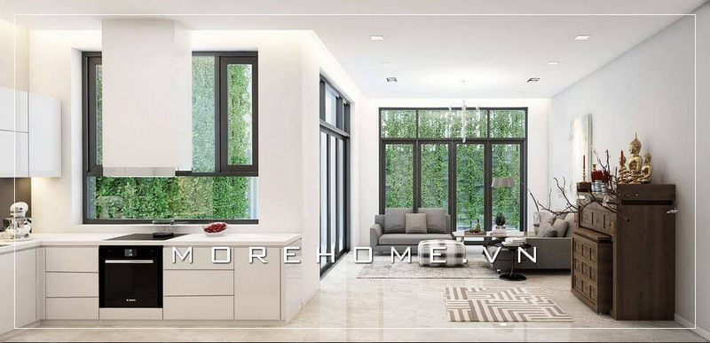 Không gian mở và linh hoạt không chỉ là một xu hướng thiết kế mà còn là cách sống đổi mới, giúp gia chủ tận hưởng cuộc sống một cách tối ưu nhất. Thay vì những bức tường ngăn cách truyền thống, không gian mở tạo ra sự giao tiếp tự nhiên giữa các khu vực chức năng, mang lại cảm giác thoáng đãng và dễ chịu. Bạn có thể hòa mình vào thiên nhiên với cửa sổ lớn đón ánh sáng tự nhiên, tạo nên sự kết nối mật thiết giữa nội thất bên trong và cảnh quan bên ngoài.