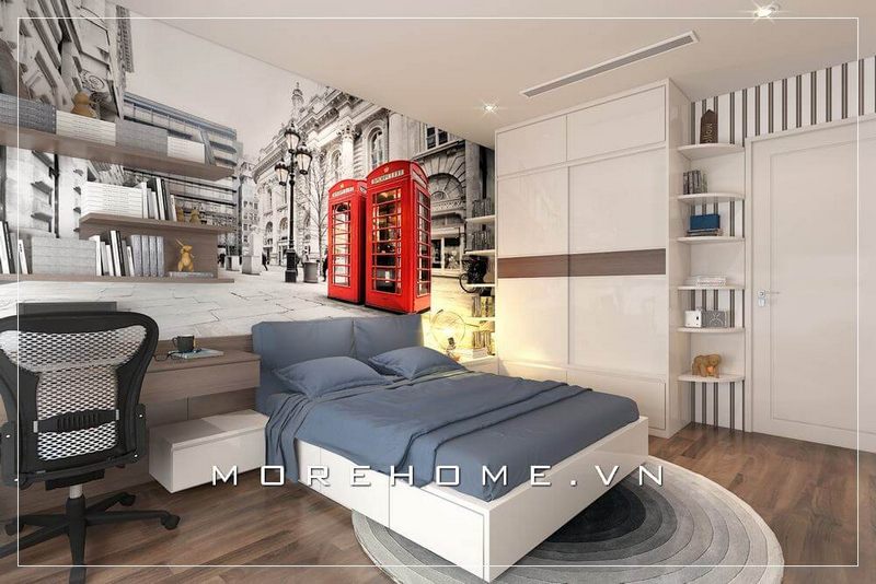 Chúng tôi đã thiết kế một phòng ngủ con trai ấn tượng và tiện nghi trong chung cư hiện đại.